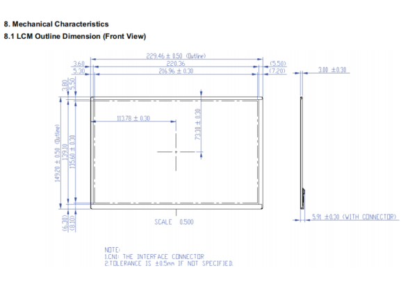 Active Area | 216.96 x 135.60 (mm) (W x H) |
