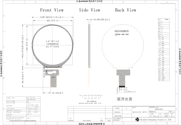 HG040HH005 | 4.0 inch TFT LCD Panel | Round Display | MIPI | 720x720 | High Brightness | 1500 Brightness |