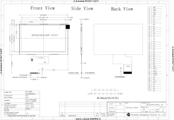 HG050WV005 | 5.0 inch TFT LCD Display | 800x480 Resolution | IPS | RGB Interface |