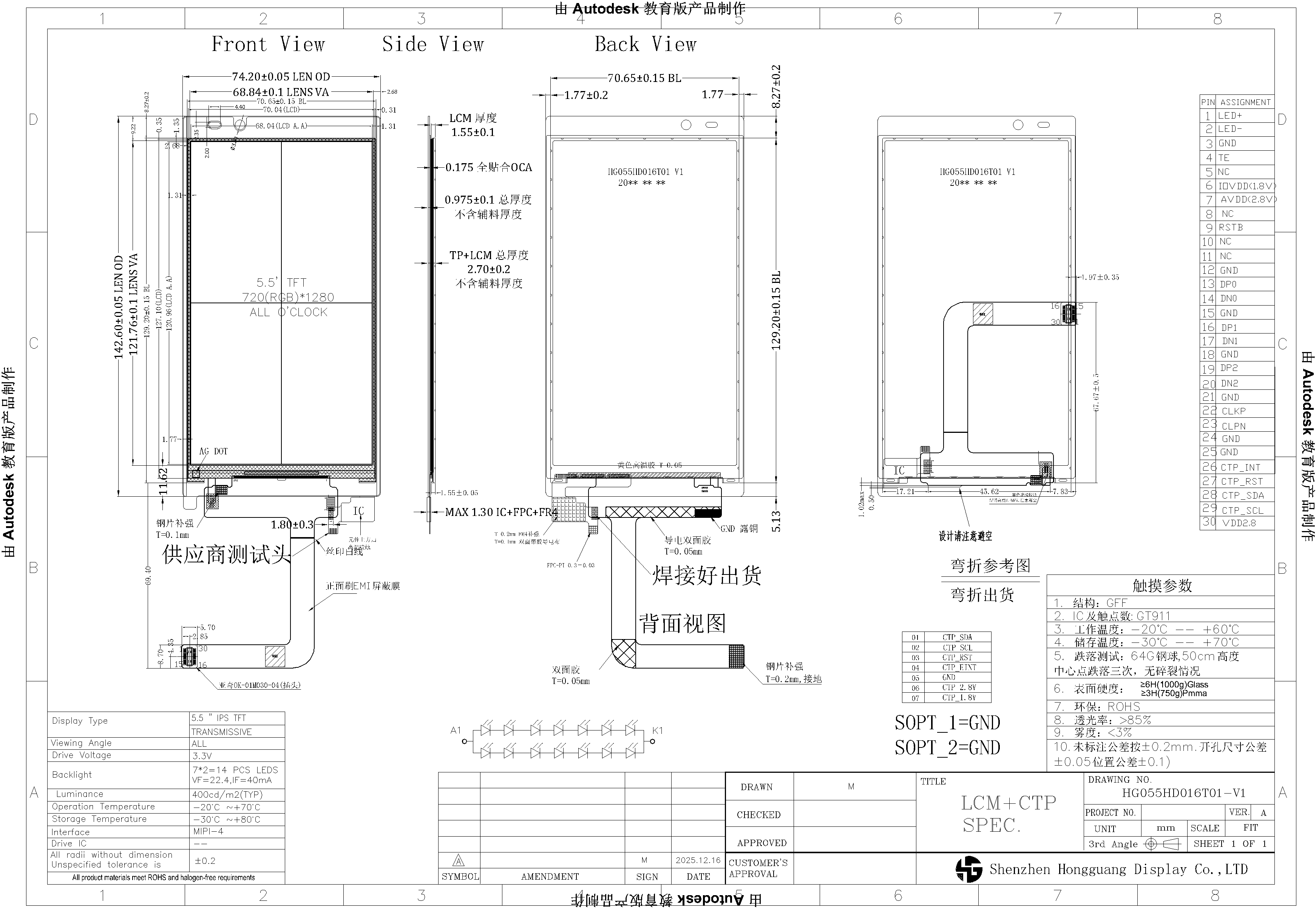 HG055HD016T01-V1 | 5.5 inch TFT LCD Panel | MIPI | IPS | 720x1280 | Capacitive Touchscreen